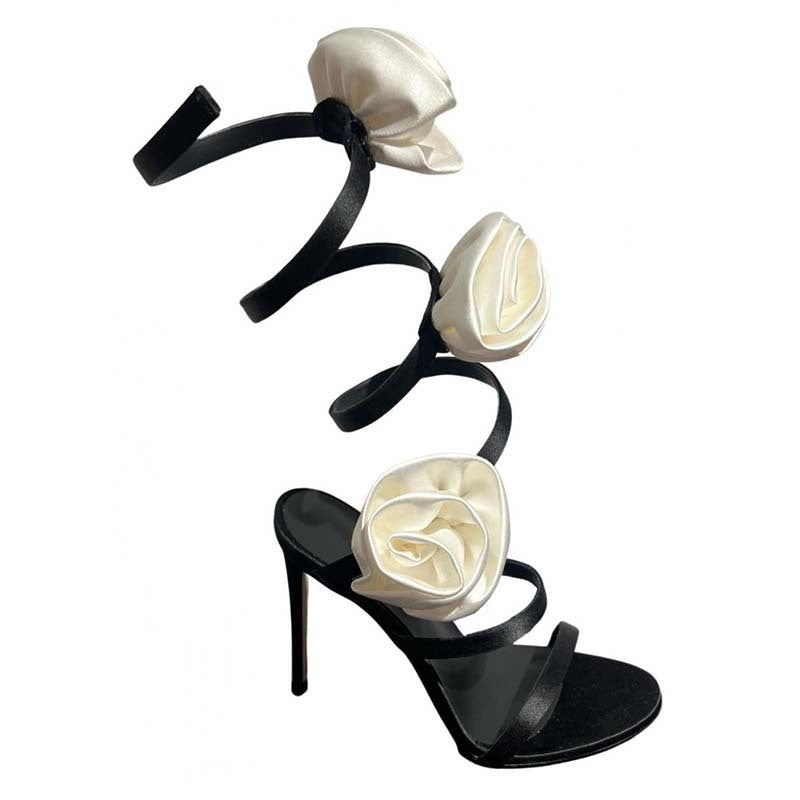 Lace-up Stiletto Heel Round Toe Flower Decorative Women's Sandals